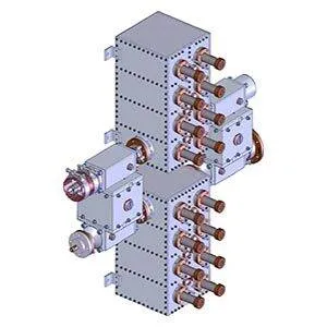 The Waveguide Filter Combiner provides the high isolation needed for adjacent channel combining applications. The RWCE series of combiners consists of two RWBE filters placed between two RWHE 3-dB hybrids. The out-of-band absorption load reduces reflections.